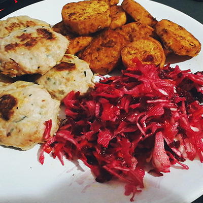 Se combina o varianta din carbo – orez alb sau salbatic, cartof copt, natur, carofi dulci sau la tava in cuptor + 200 gr de carne pui, peste, curcan (o data pe saptamana vita sau porc)